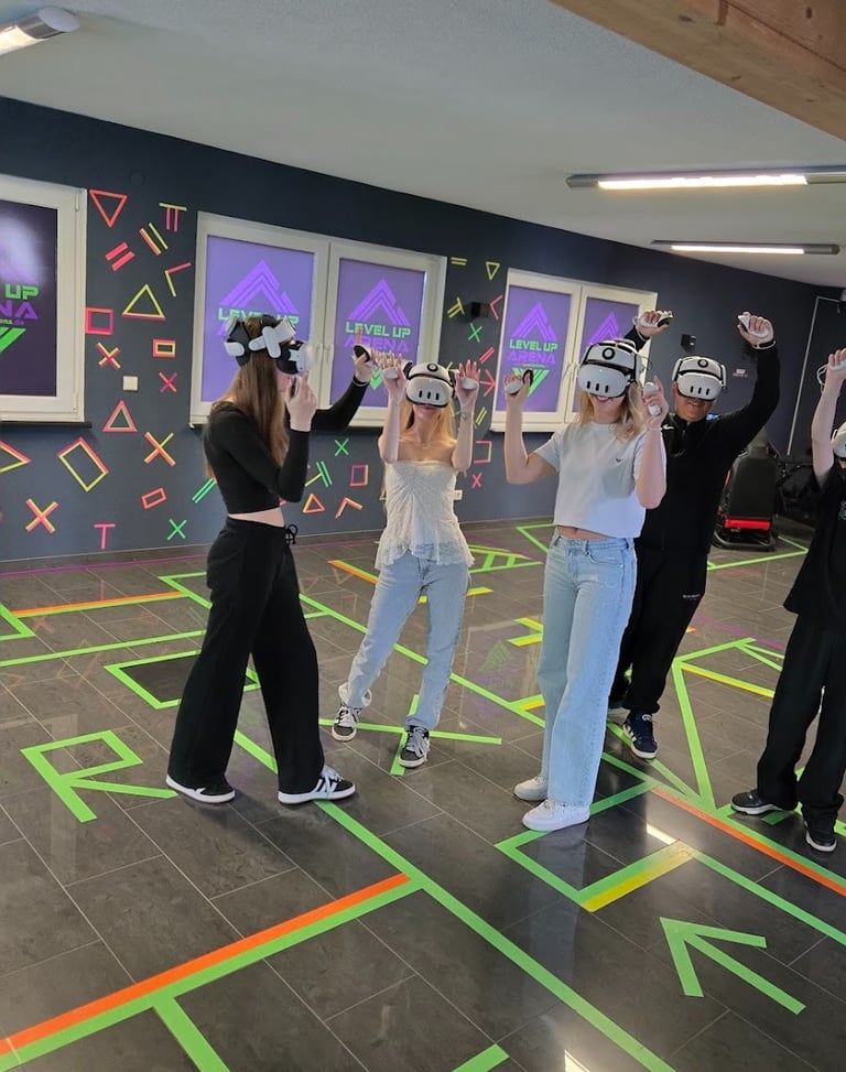 Tauche ein in die faszinierende Welt der Virtual Reality! In der VR Level Up Arena Pforzheim erwartet dich ein unvergleichliches Erlebnis voller Spannung, Action und Teamgeist. Ob packende VR Escape Rooms, rasante Rennsimulatoren, intensive Zombie- und Survival Games oder die einzigartige 4-vs-4 VR Arena – hier ist für jeden etwas dabei.